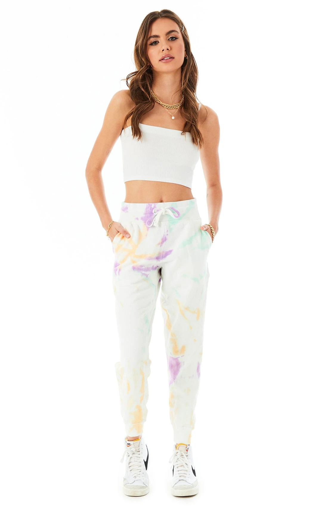 Give us more tie dye, please. Your new cozy go-to is here. Whether you’re lounging at home or looking for that effortless laid back fit, these sweatpants are just what you need. Paired up with our firework tie dye zip up and Poor Boy tank, no wardrobe dilemma over here.