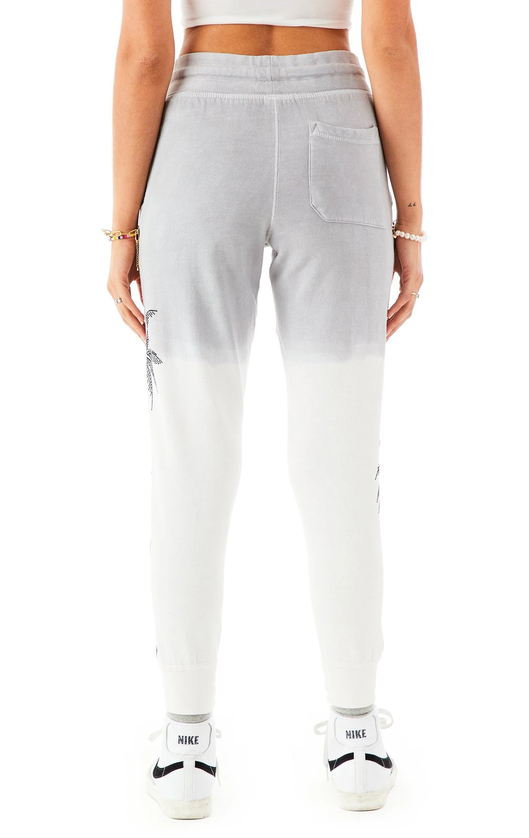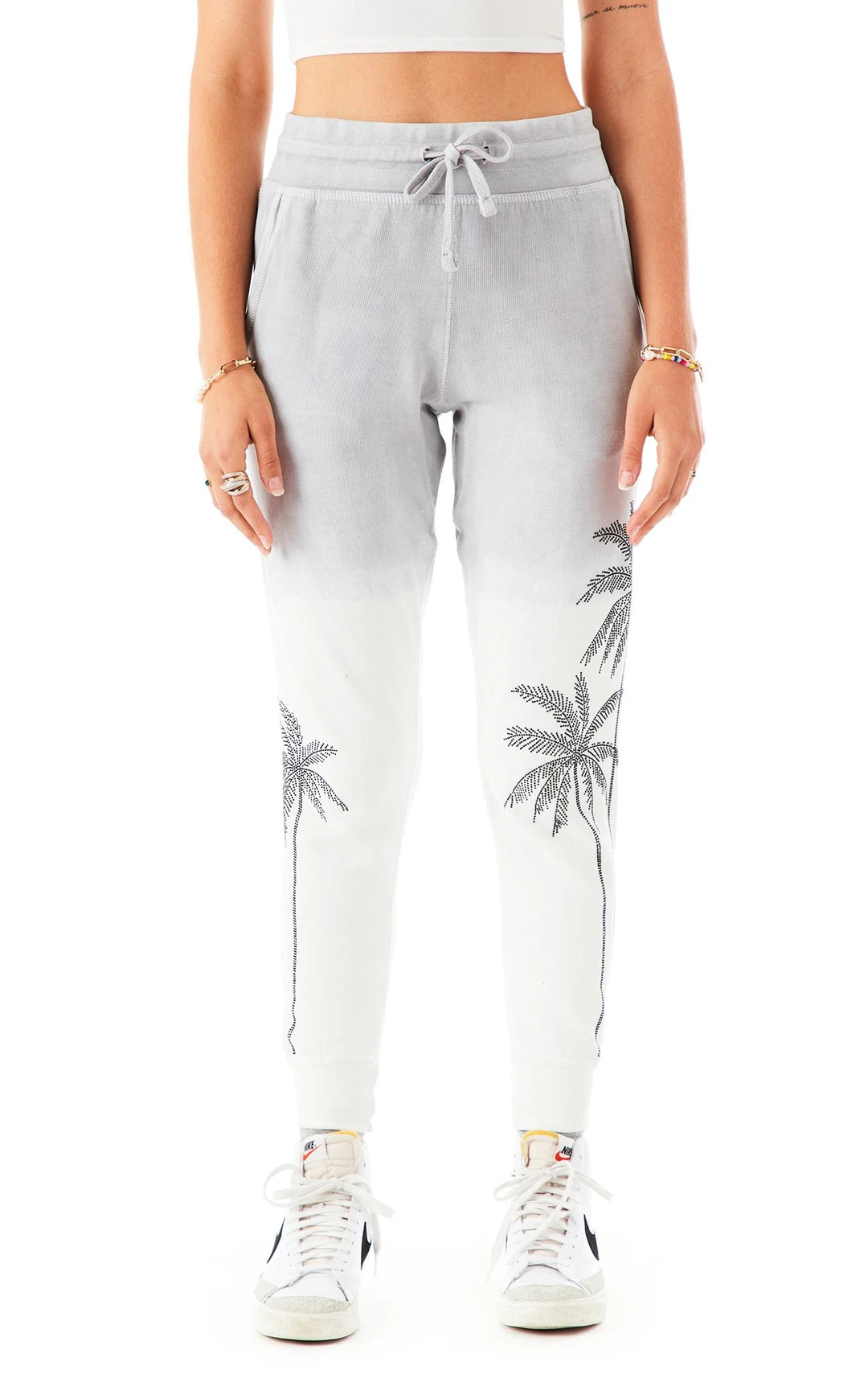 I’m sorry for dippin’. Actually, jk because there’s no need to be sorry when you’ve got these rhinestone palm tree dip dye sweatpants on. The light grey and white dip dye pattern emphasize the black rhinestone palm trees. These pants are unapologetically fabulous and they’re ready to be yours.