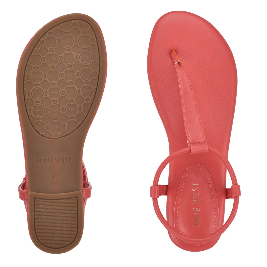 A warm weather essential, the Nine West Bassie flat sandal is a necessary style for your wardrobe. The classic t-strap silhouette gets a trendy update with a stretchy tubular style ankle strap.