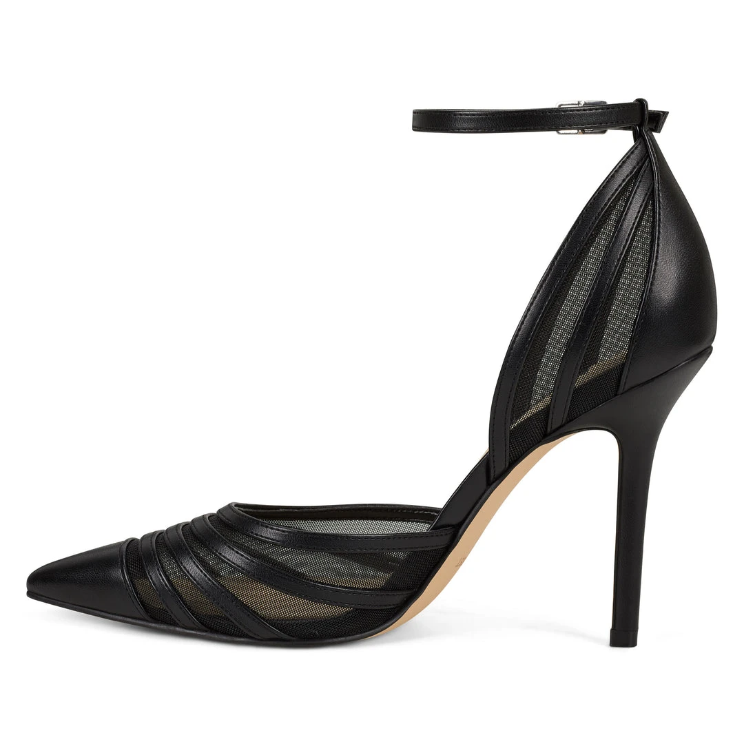 A thin, adjustable ankle strap tops our Beck elegant leather and mesh pointy-toe pump lifted by a sky-high 3.94″ heel.