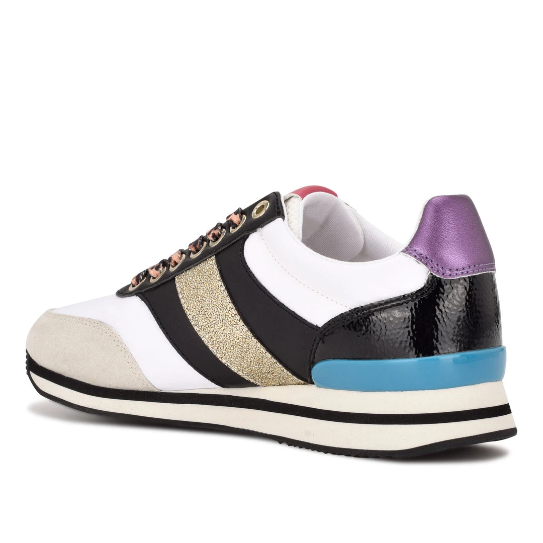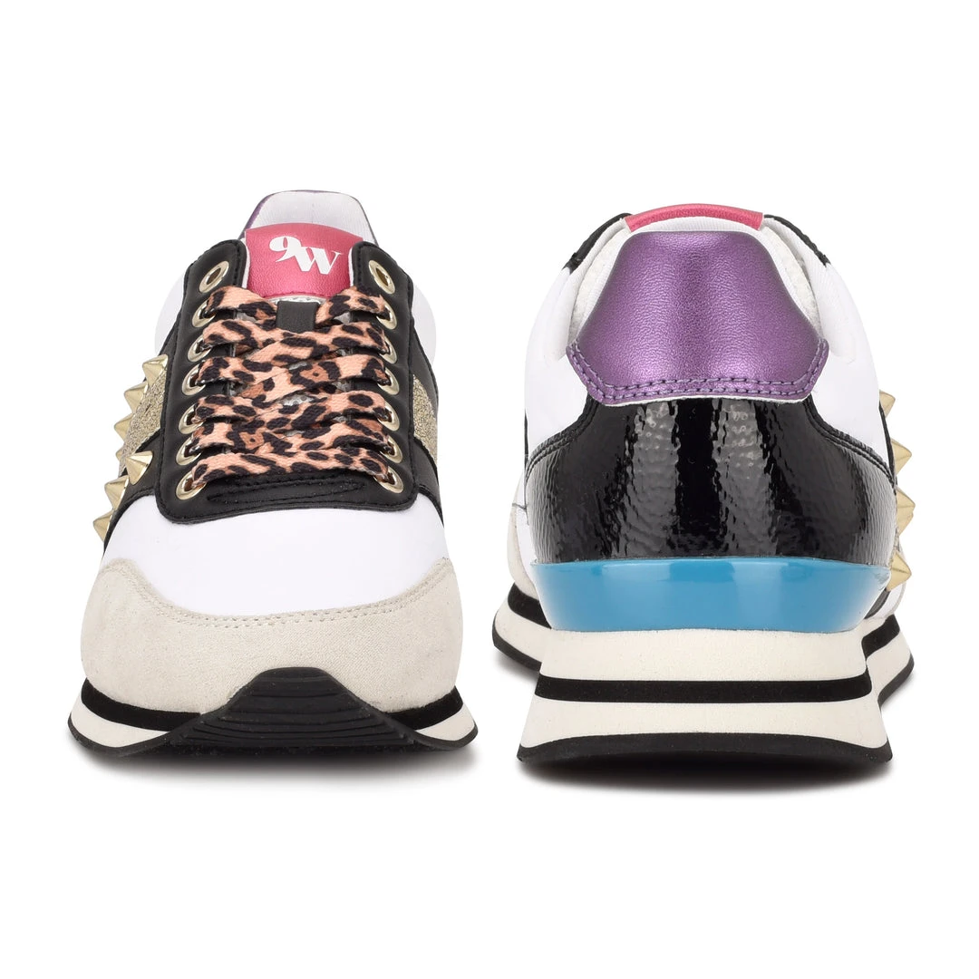 The Bunnie fashion sneaker is a maximalist’s dream sneaker. It features two rows metallic studs besides a Nine West logo plate on the side and a 9W logo on the tongue. This sneaker comes in a variety colors and patterns that will fit any style.