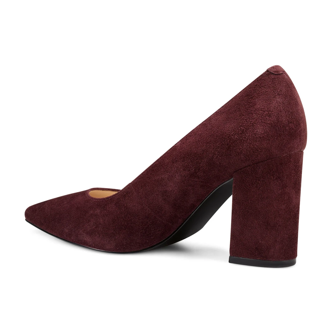 A 3.25″ chunky heel lifts our Cara leg-lengthening pointy toe pumps — perfect for everything from the office to a night out.