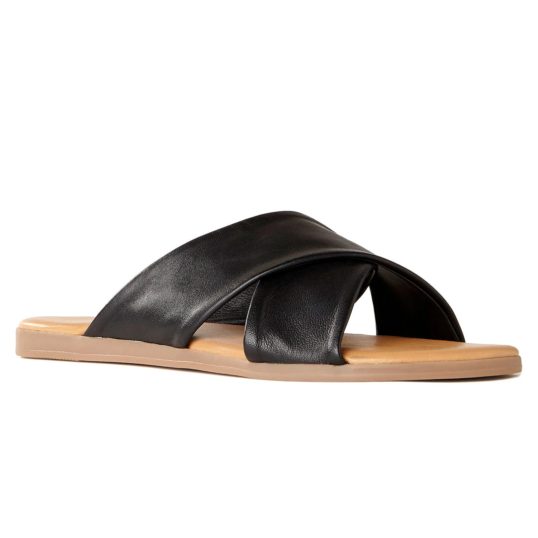 Crisscrossing leather bands make our Crush open-toe flat slide sandals an easy choice for everyday comfort this season.