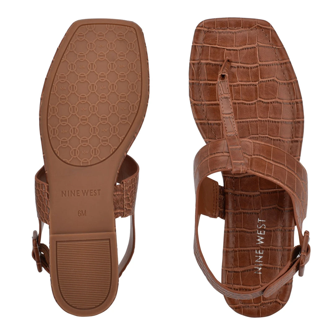 Sophisticated and essential, the Nine West Define sandal will be a go-to for everyday wear. The classic t-strap silhouette gets a modern and stylish update with the embossed croc material and square toe. The retro inspired buckle adds additional detailing at the heel.