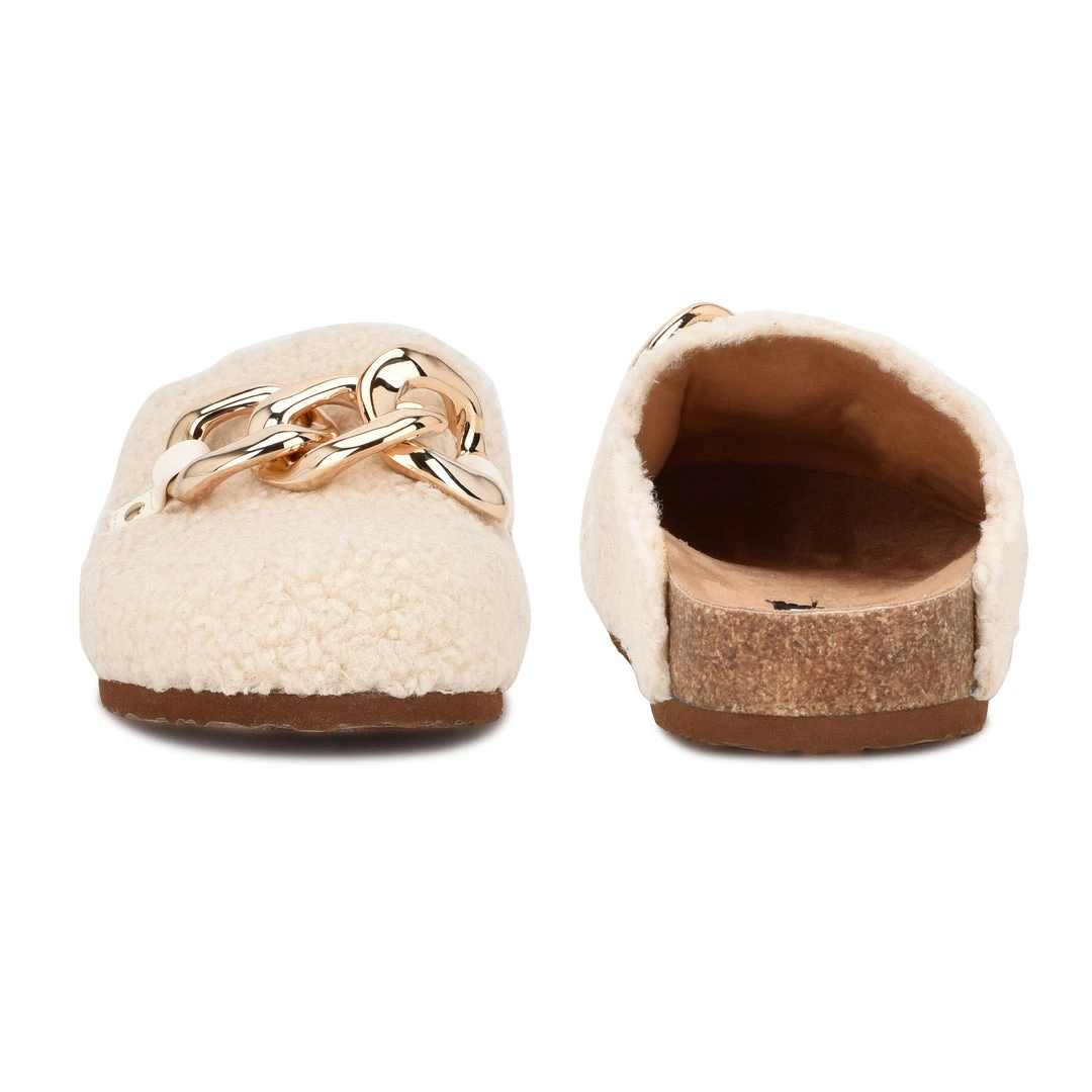 The Everyth slip on mule is a classic clog silhouette with a trendy update with an oversized metallic chain. The wool-like material gives these clogs and extra cozy feel.