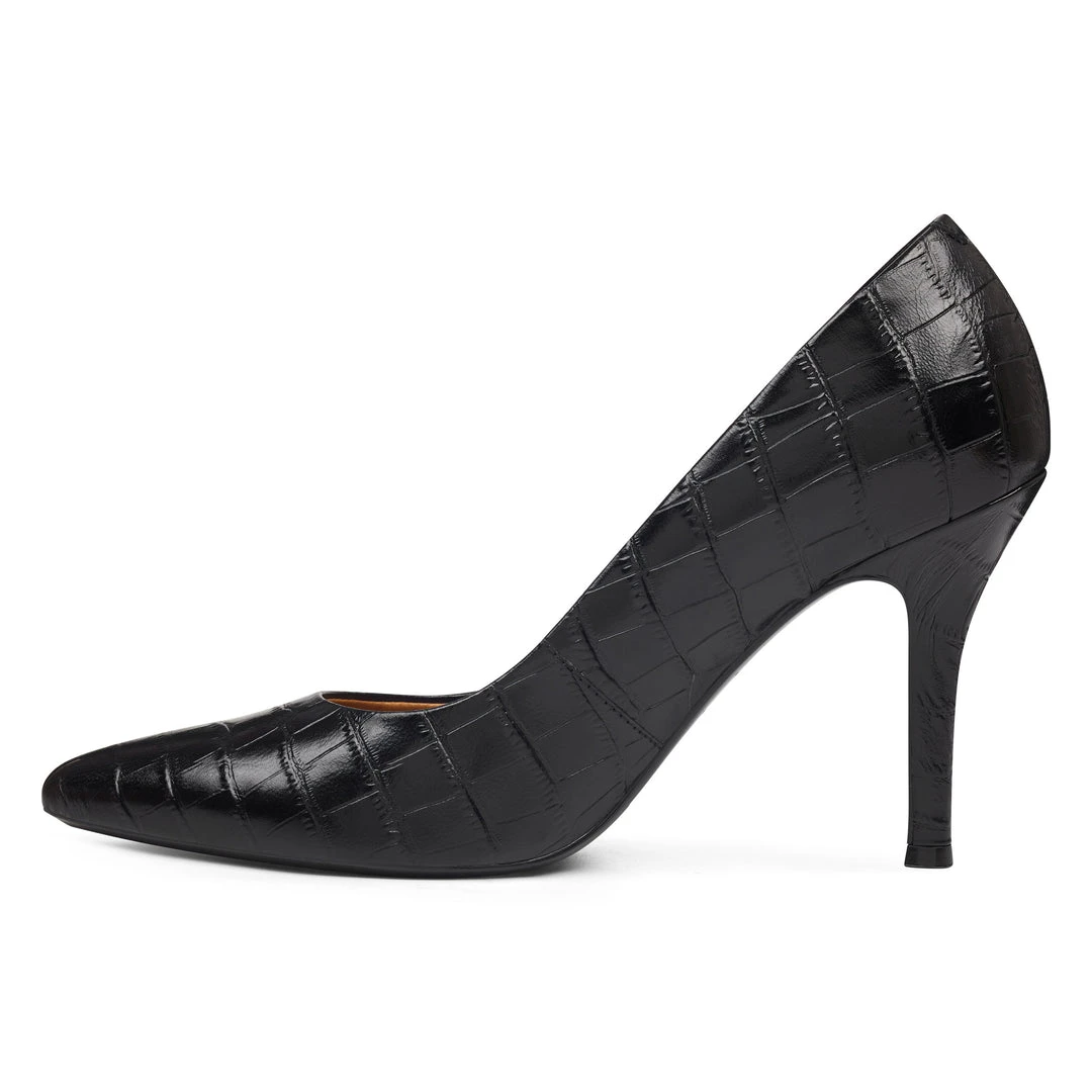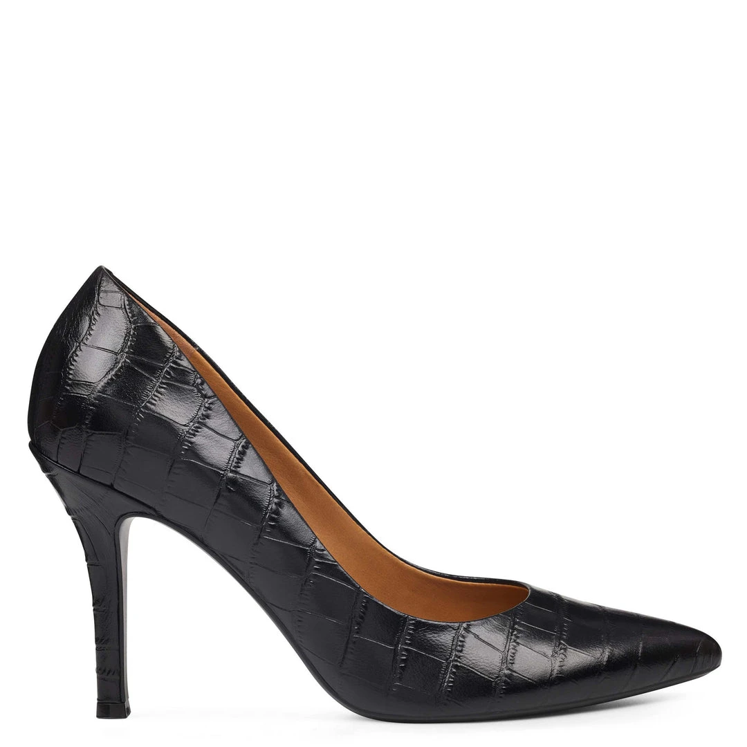 Fifth has a classic 3.75″ heel designed to add leg-lengthening lift to a wear-with-anything pointy-toe pump.