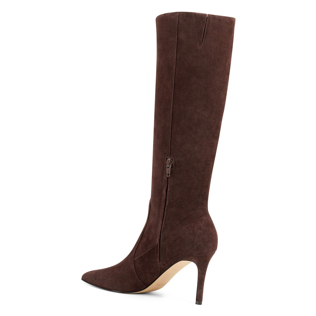 Clean, simple lines elevate the street-chic appeal of our Fivera leg-lengthening pointy-toe boots lifted by a slender 3.27 heel.