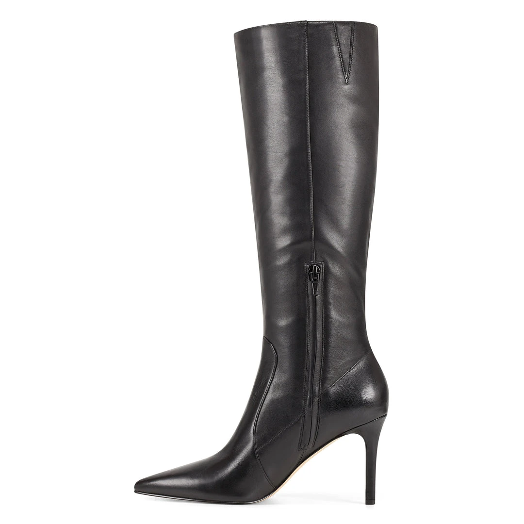 Clean, simple lines elevate the street-chic appeal of our Fivera leg-lengthening pointy-toe boots lifted by a slender 3.27″ heel.