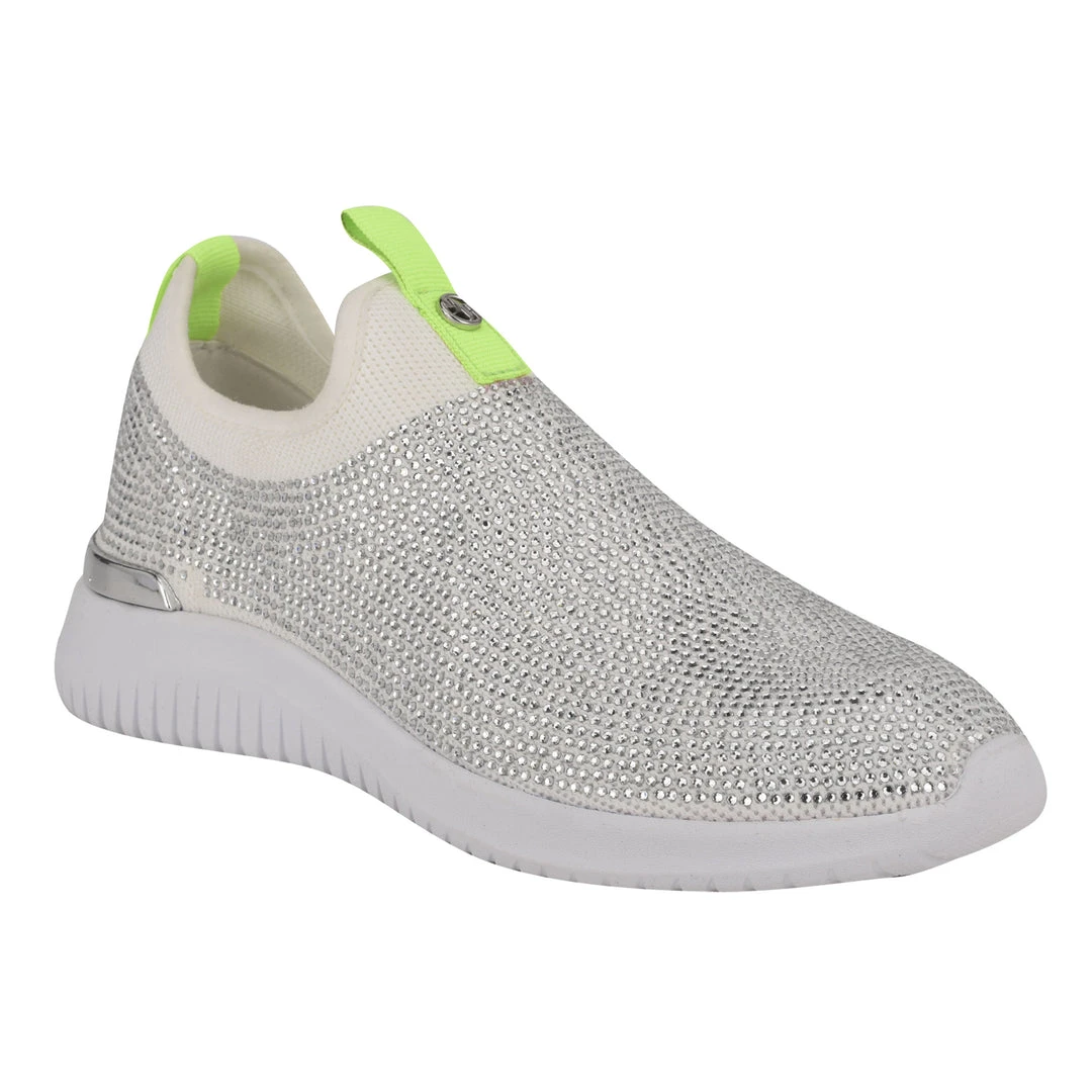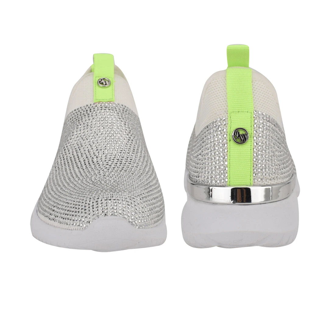 Glam up your everyday sneaker with the Miya. This athletic inspired slip on silhouette is will make any athleisure outfit extra fabulous with the all-over rhinestone details.