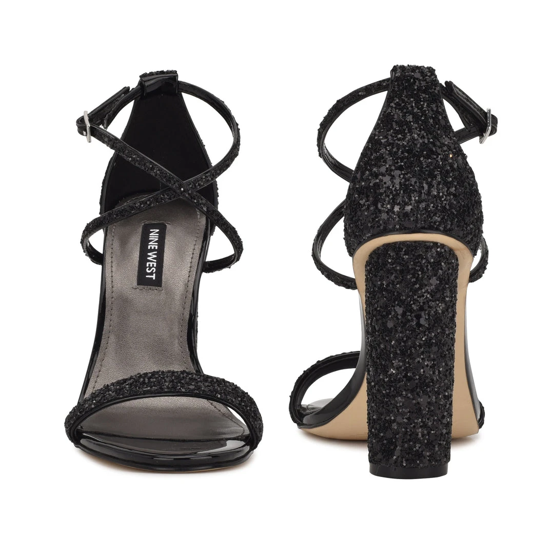 It’s time to sparkle and shine in the Celebra high heeled dress sandal. The cylindrical block heel, toe strap, and criss-cross ankle strap are covered in glamorous glitter.