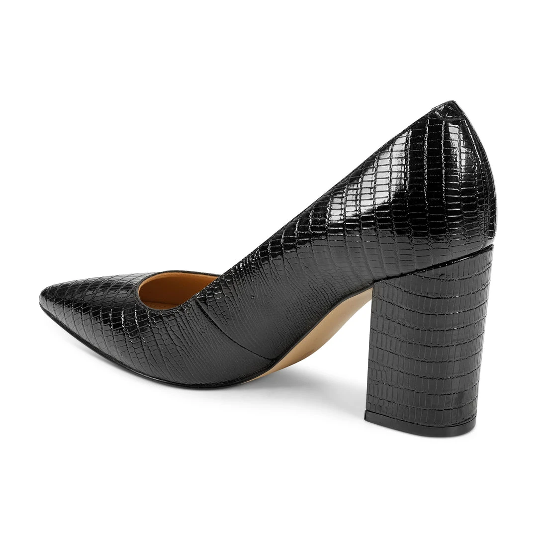 A 3.25″ chunky heel lifts our Cara leg-lengthening pointy toe pumps — perfect for everything from the office to a night out.