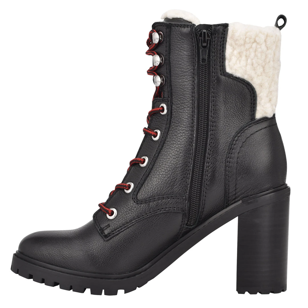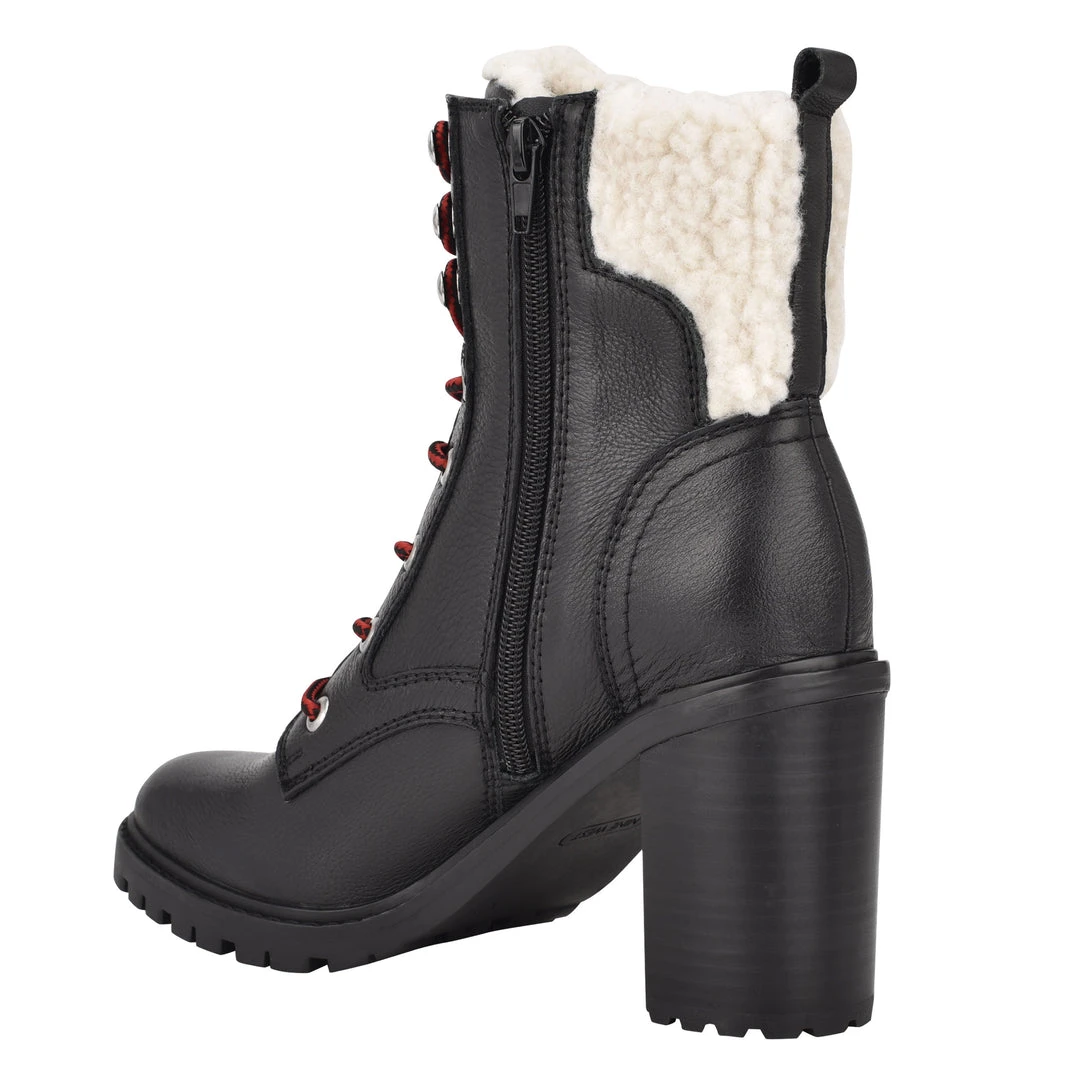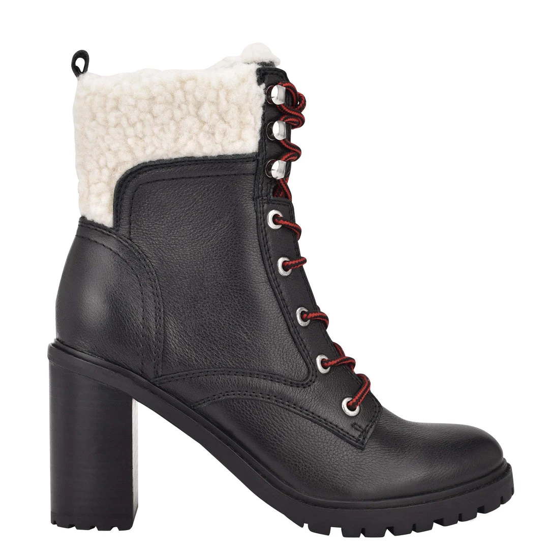 The Perli Heeled Booties are round toe booties with a high lugsole heel.