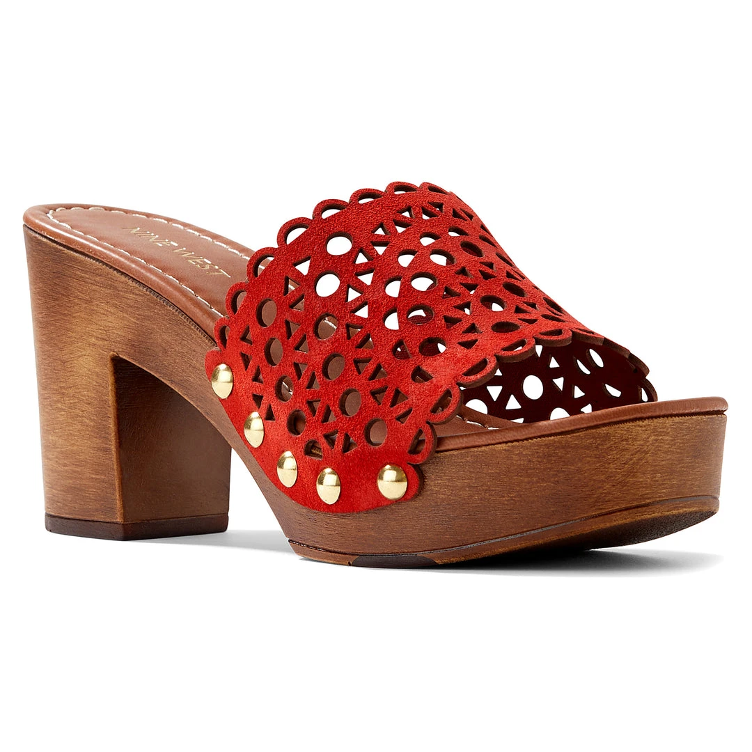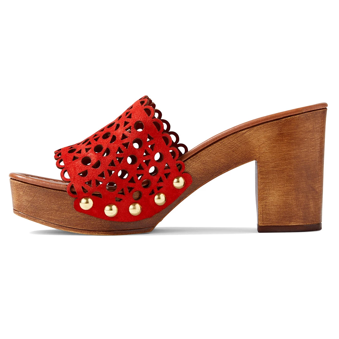 The Shelbi Heeled Clog Sandals are open toe sandals with a mid block heel.