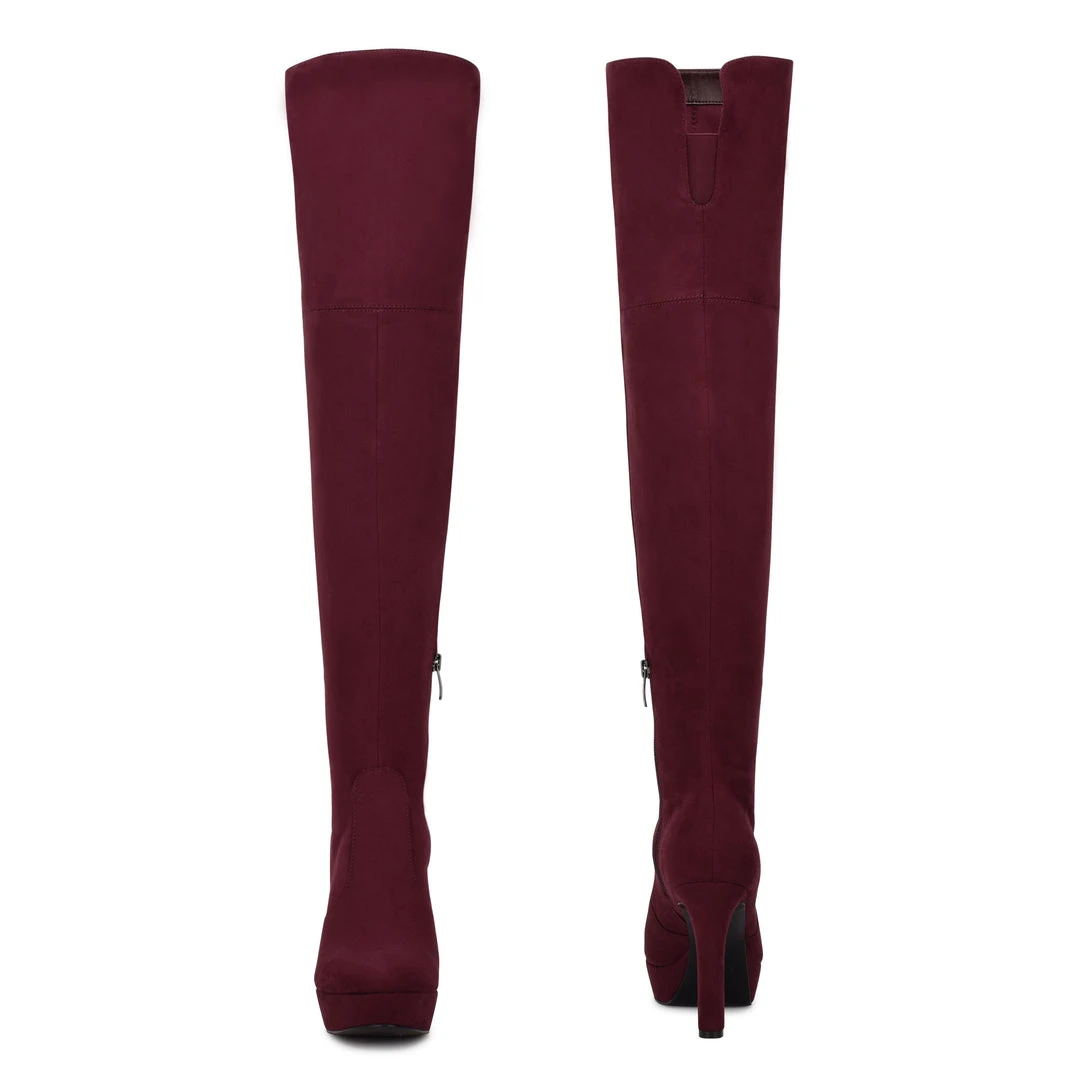 Elevate your wardrobe this season with the Gotcha over the knee heeled boot. It features a skinny high heel with a hidden platform and flattering round toe.