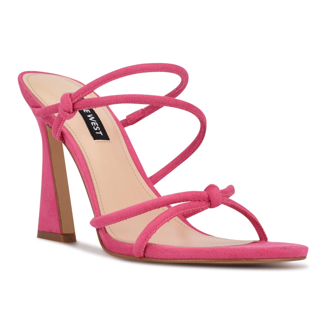 Slip on the Nine West Kims high heeled sandal for a sexy “it girl” look. The trendy sculpted high heel is paired with skinny tubular upper straps with subtle knotted detailing at the toe and the ankle.