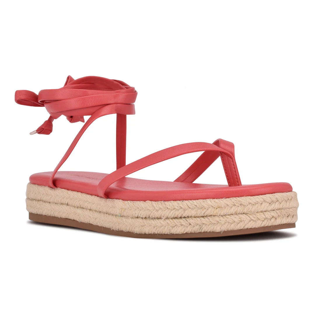 Up your sandal game with the Nine West Monee espadrille. This summery sandal features a low platform and the thong upper strap is paired with a matching ankle wrap tie for a fun and sexy look.