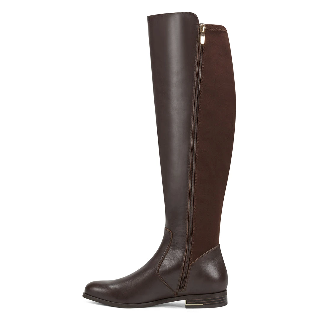 The Levi Wide Calf Stretch Back Boots are round toe boots with a low heel.