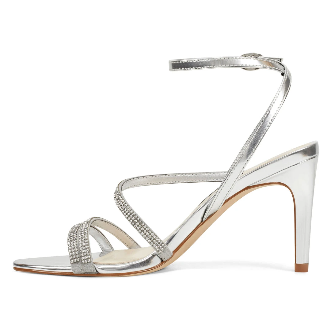 Ready to step out on the town, a barely there strap meanders its way up to Dana’s adjustable ankle strap, lifted by a 3.15″ heel.