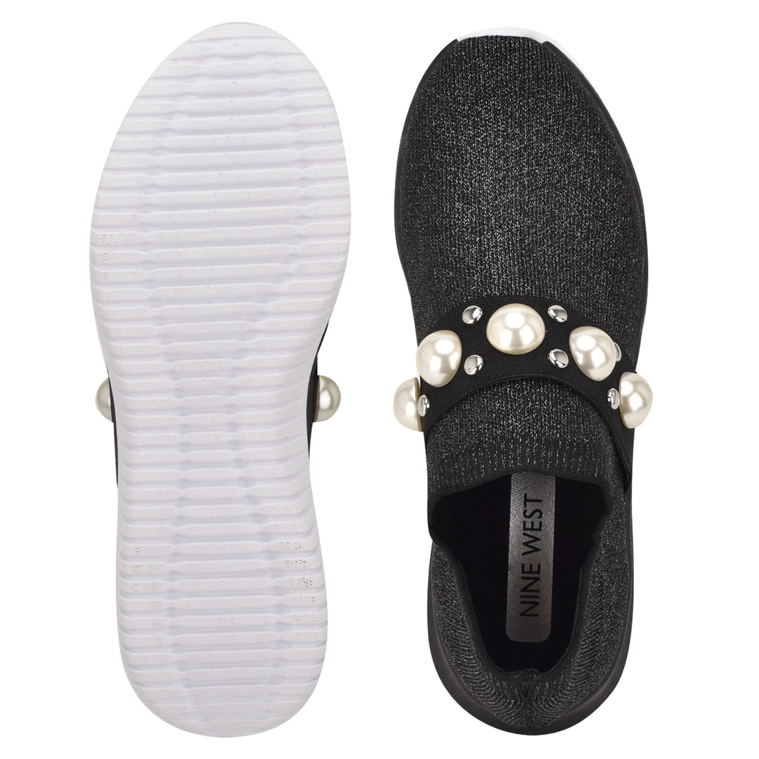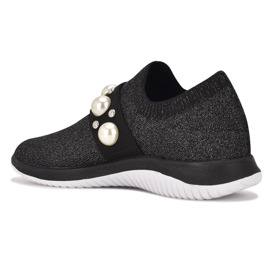 Glam up your favorite knit sock sneaker with Milee. It has the athletic-look that everyone loves with the added detail of oversized pearls and rounded studs for that extra dose of glam.