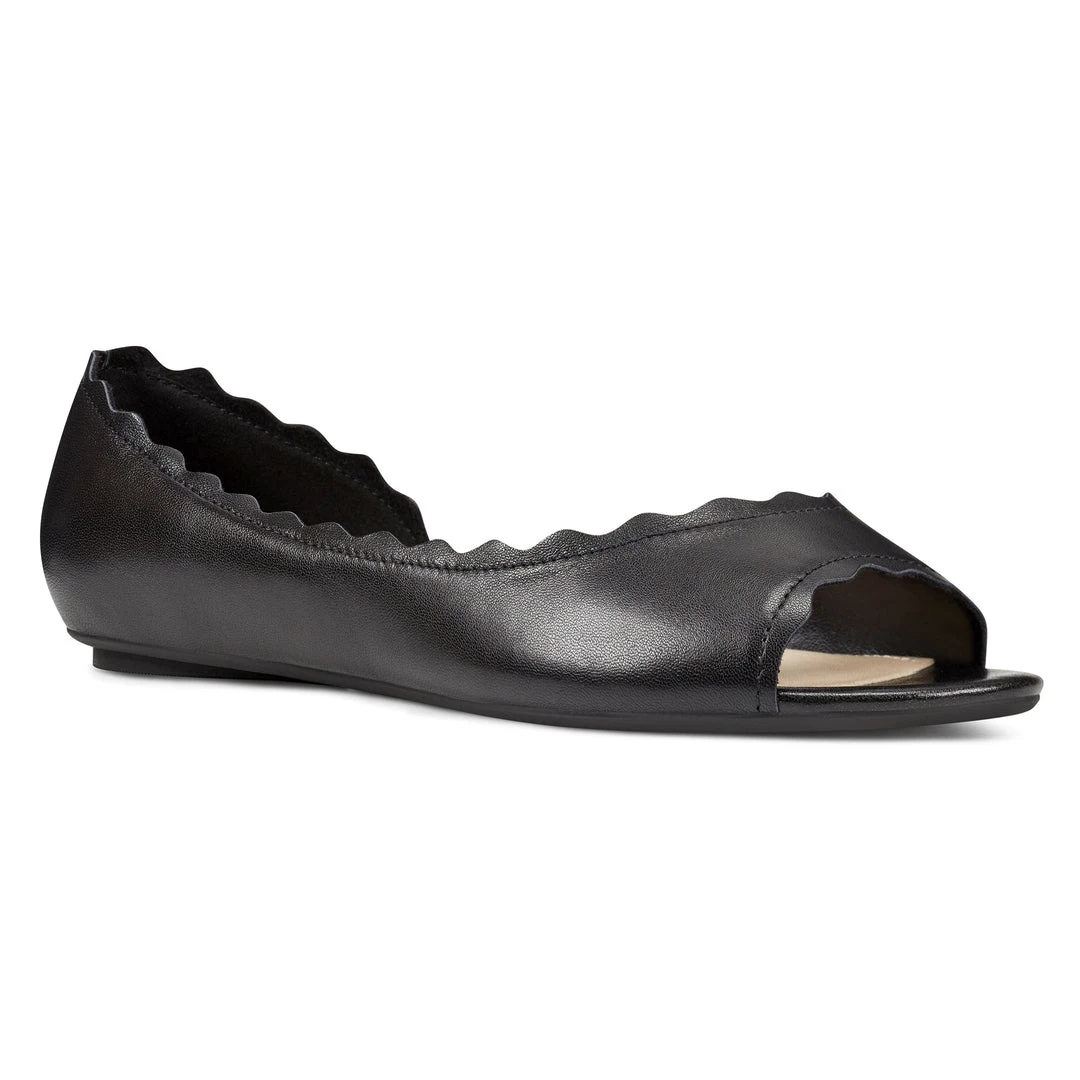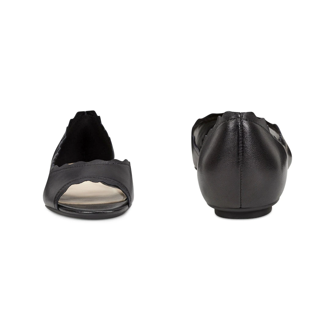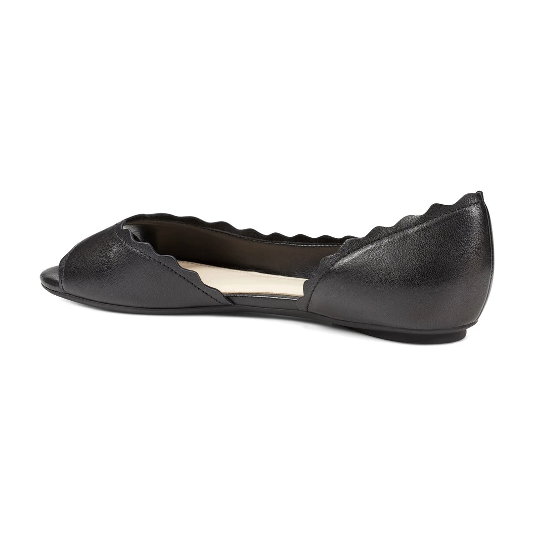 A scalloped contemporary half d’Orsay topline updates our Breeze flat sporting an open toe.