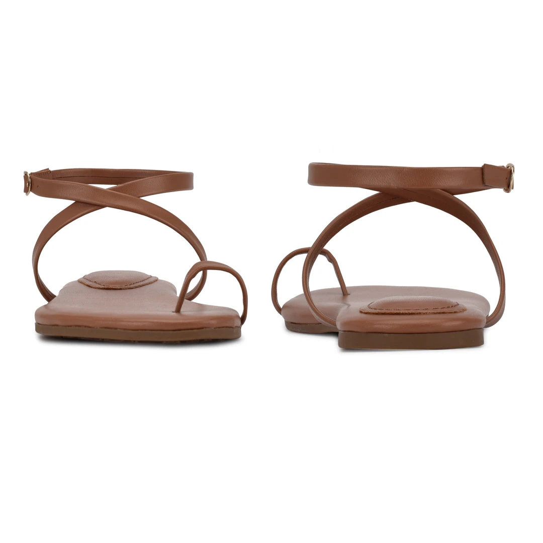 The Nine West Baxter sandal is a trendy barely there sandal that gives you an effortlessly sexy look. This flat sandal features a stylish toe ring and a thin criss cross ankle strap.