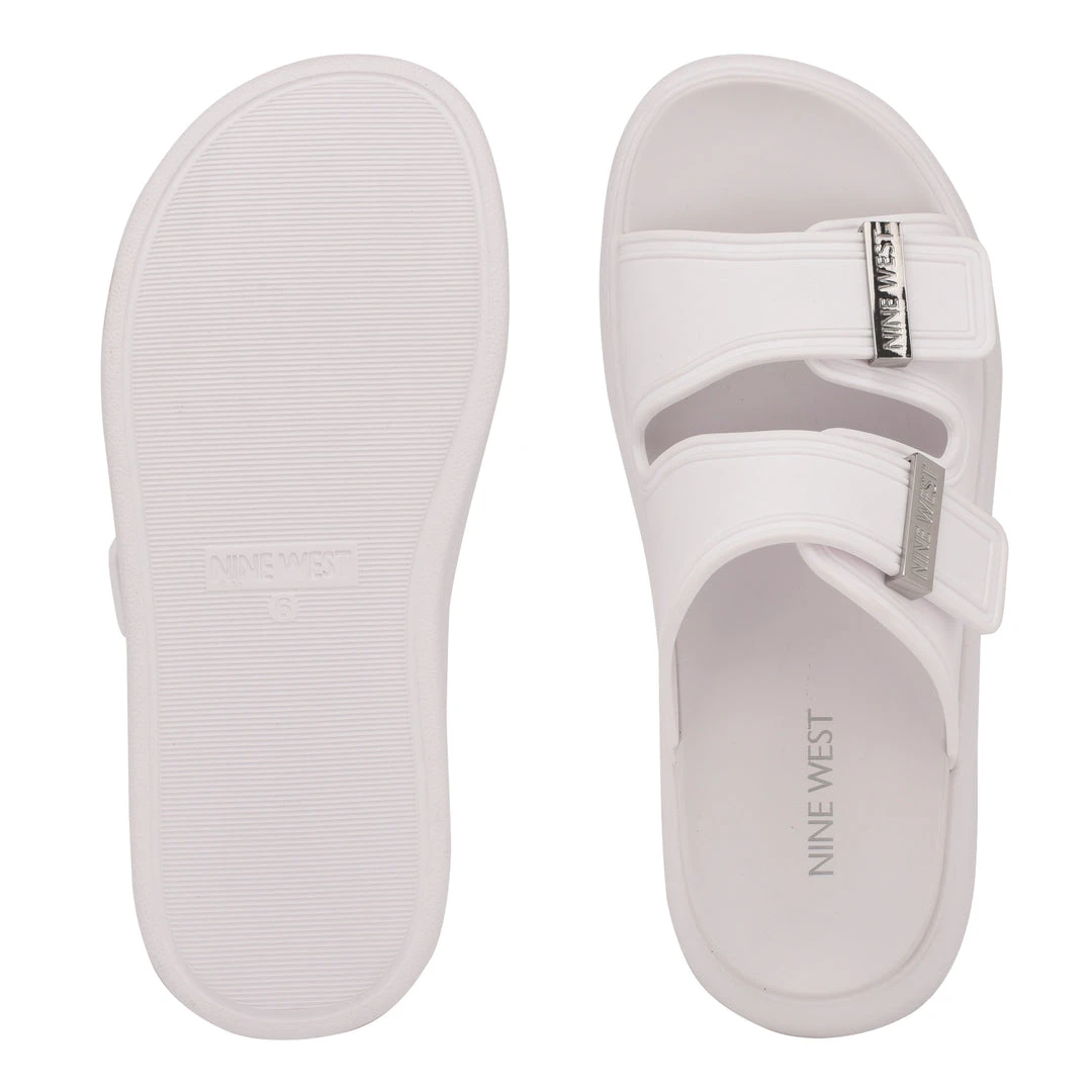 Casual and trendy, the Nine West Dew slide sandal is the ultimate choice for the pool or the beach. This all rubber sandal features a molded platform footbed and two buckled straps on the upper.