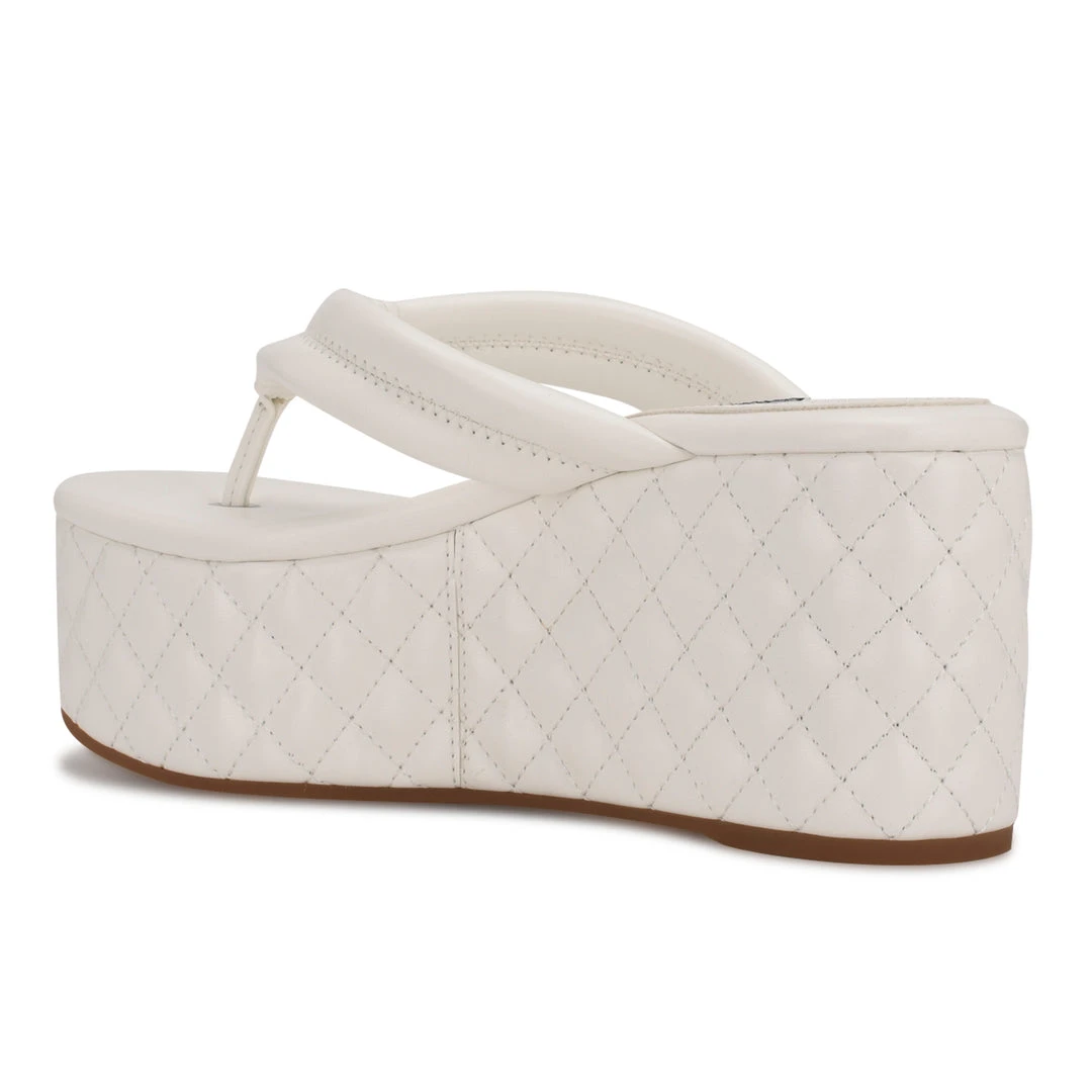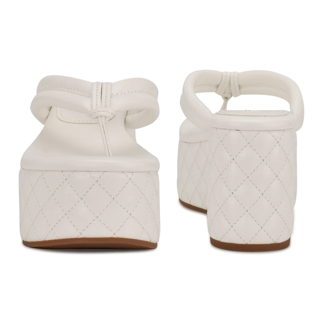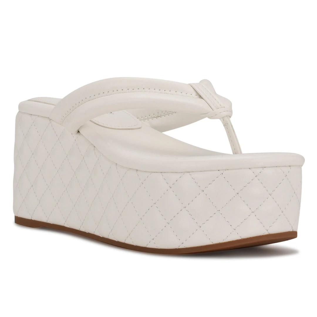 Slide into the Newya platform thong sandal for a Y2K fashion inspired look. The ultra high platform wedge is covered in a quilted pattern and the wide upper straps are stitched to create a trendy puffy look and feel.