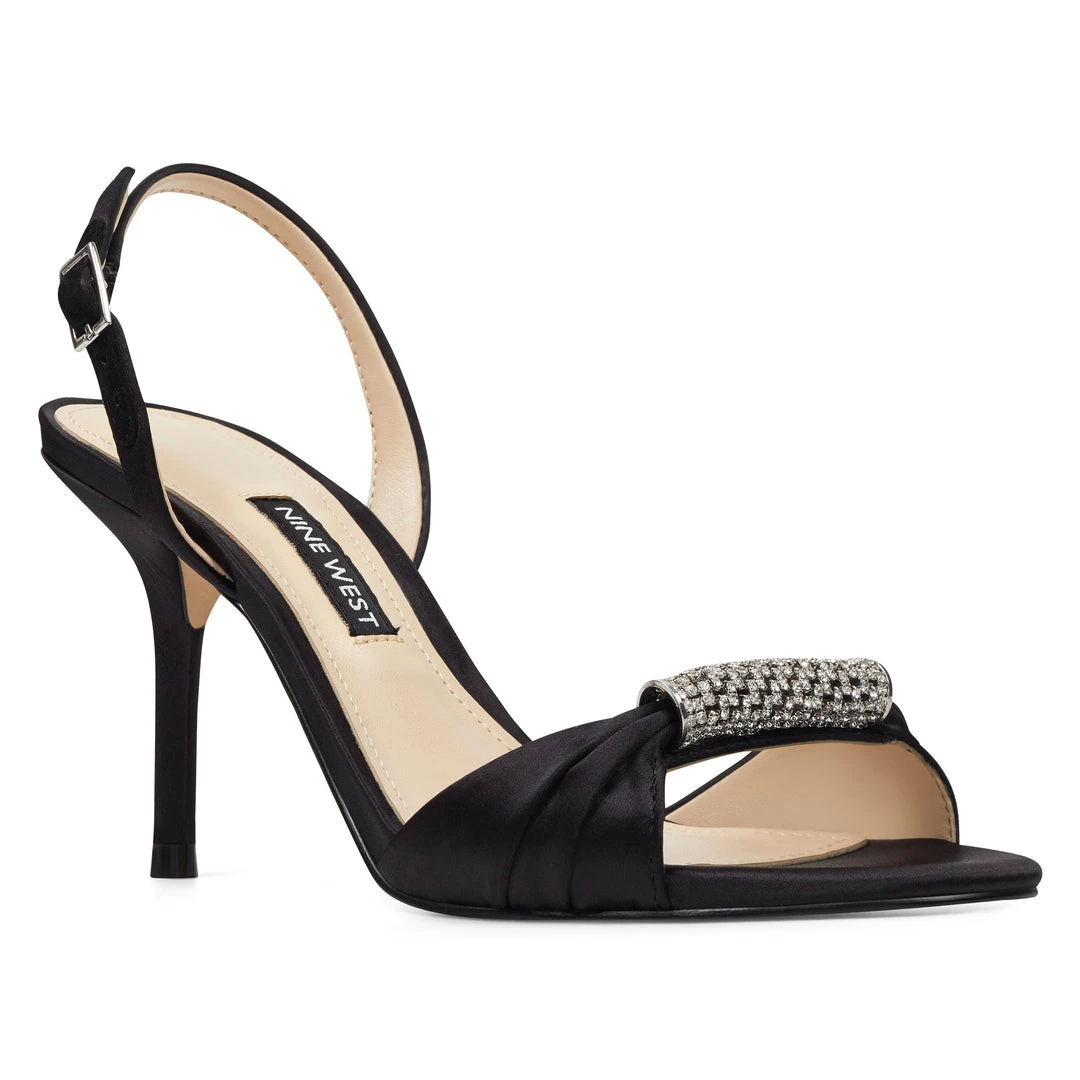 Uptown elegance is captured in our Ondrea slingback sandals counterbalanced by a pedi-ready open toe enhanced by a jeweled strap lifted by a 3 1/4″ heel.