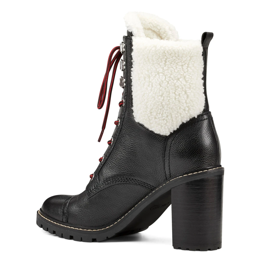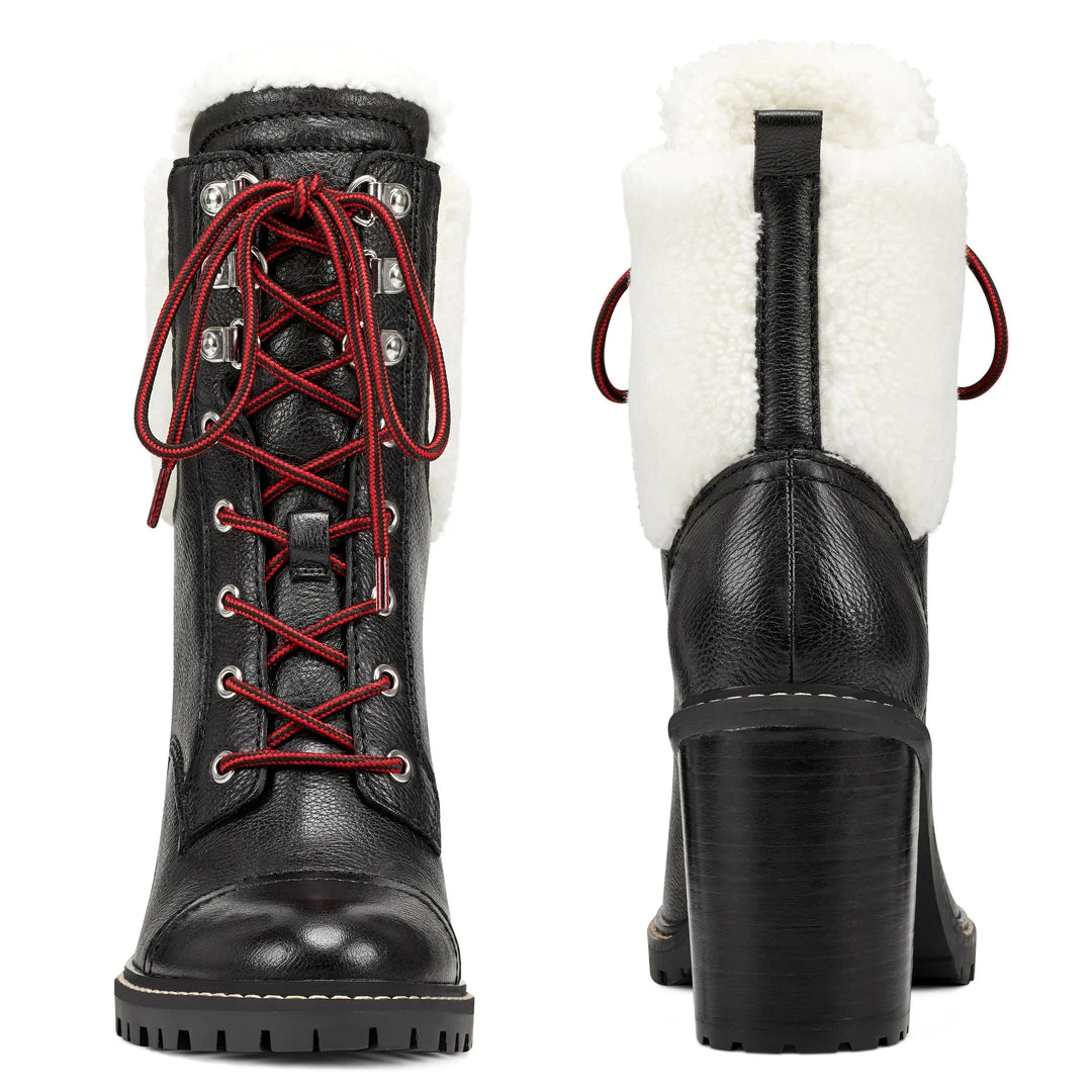 A faux sherpa collar tops our Phaedra boots featuring a lace-up front and a stylish round toe lifted by a 3.35″ chunky heel.
