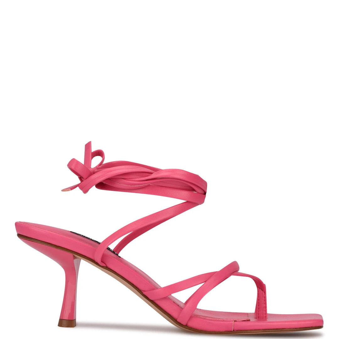 Trendy and casual, the Nine West Pina heeled sandal will step up your shoe game at any time of day. The strappy, ankle wrap tie design is paired with a stylish toe ring and skinny mid-height heel.