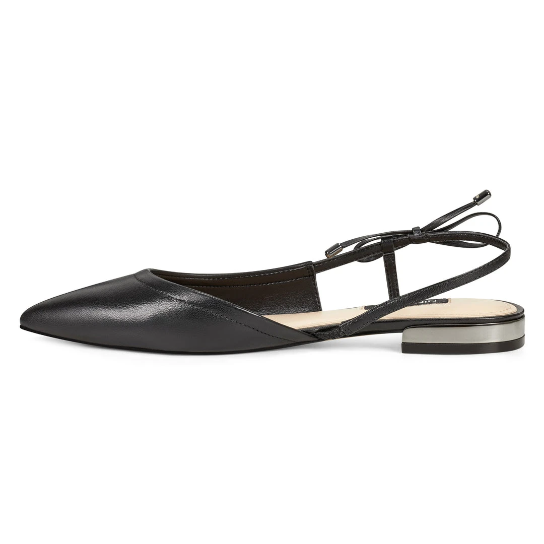 An easy .59″ heel lifts our Rosa flat featuring a leg-lengthening pointy-toe design secured with a slender slingback strap.