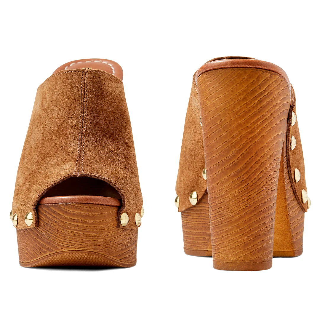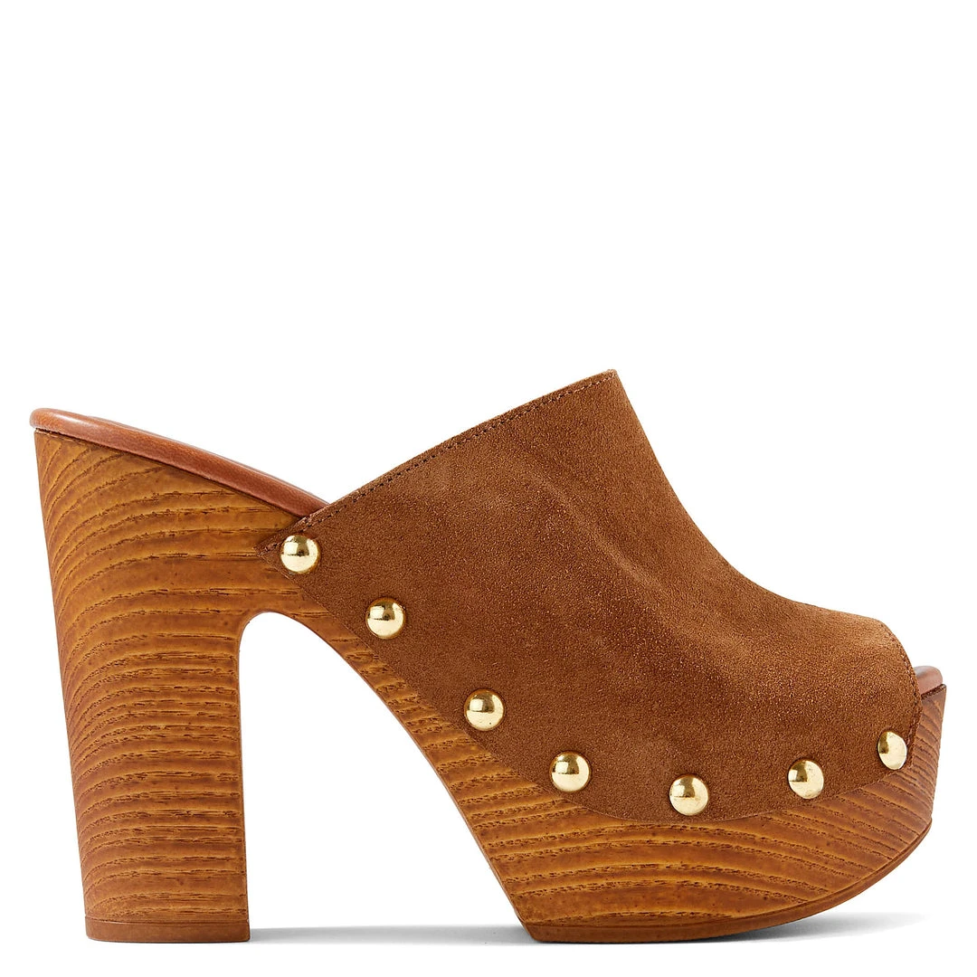 The Shaya Heeled Clog Sandals are open toe sandals with a high block heel.