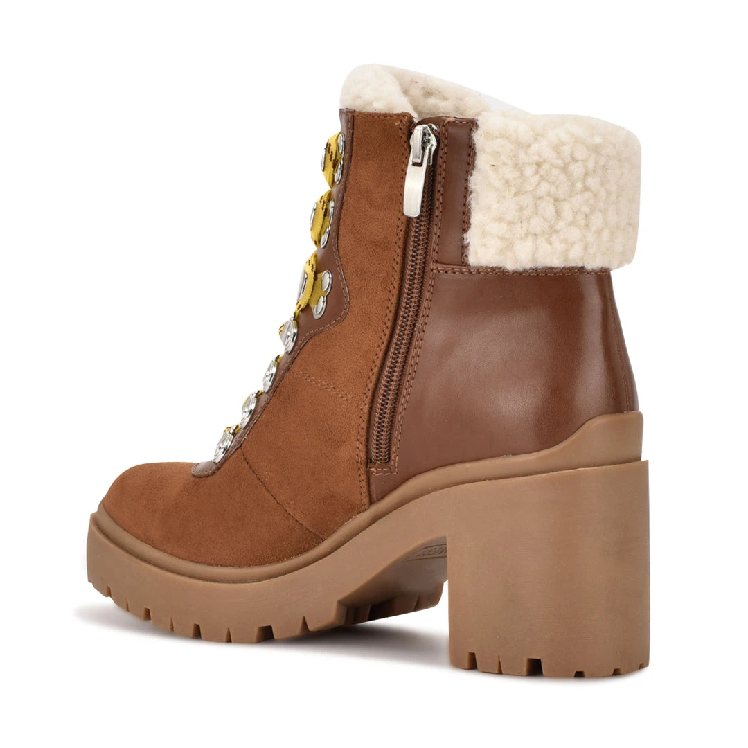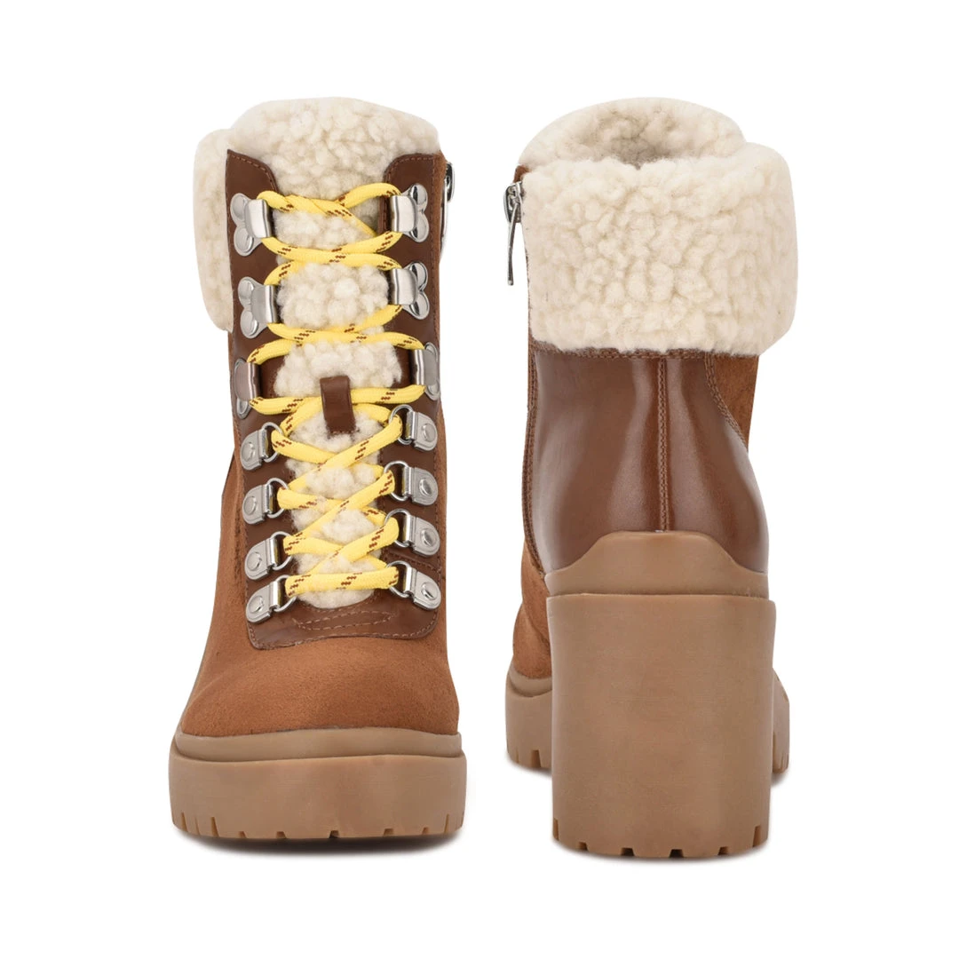 Tough out the cold weather in style with the Quimbie heeled lace-up booties. The combat inspired boots feature a trendy lug sole with a high heel and stylish faux shearling trim around the ankle and up the tongue.