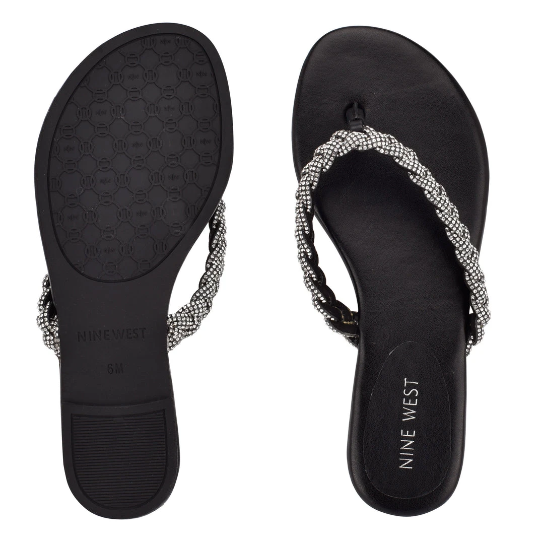 Give the Nine West Tinee thong sandal a try for effortless, easy to wear glam. This flip flop style sandal has the perfect amount of sparkle that is easy to dress up or down. The straps are made of braided beaded rows that are sure to impress.