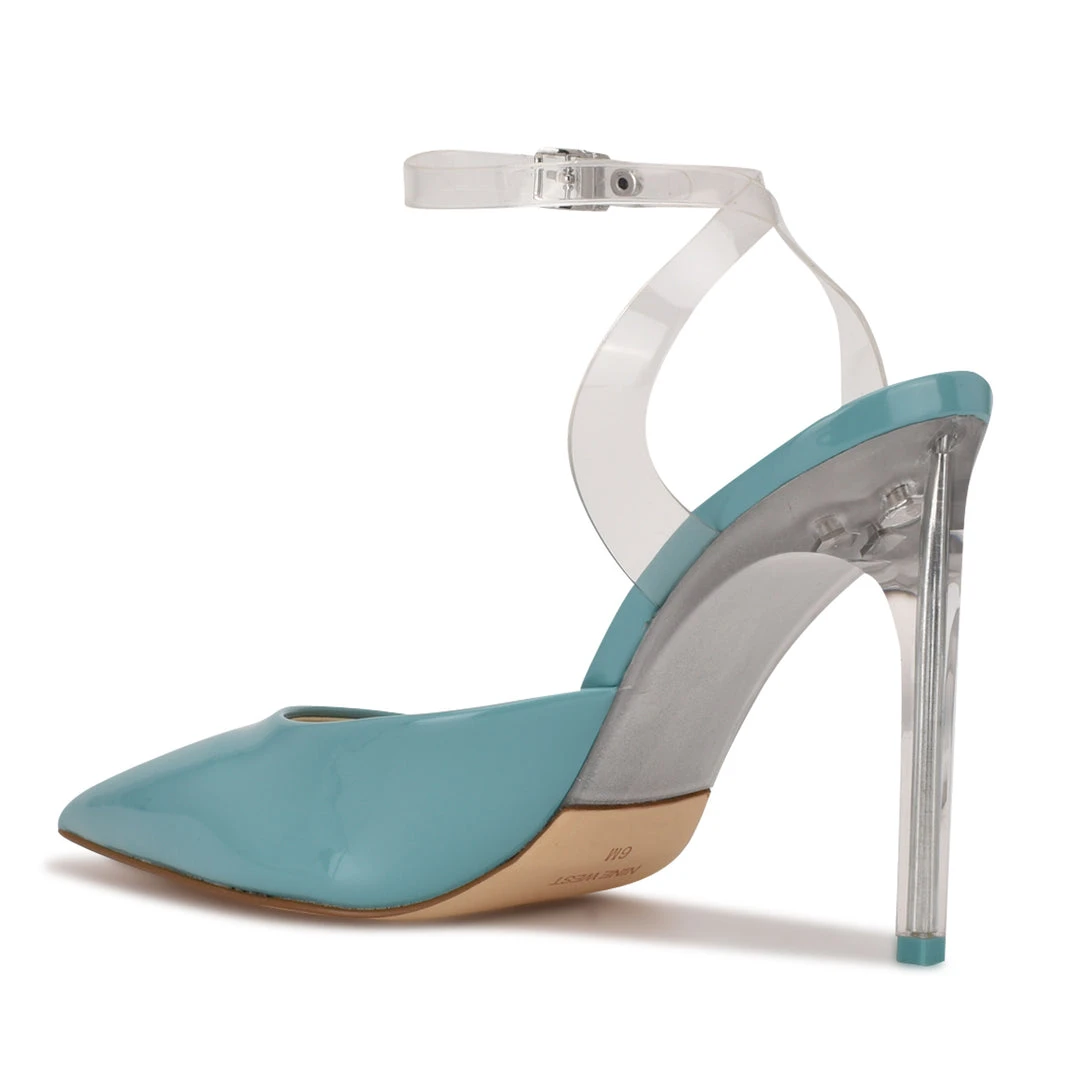 Stand out and be bright with the Sparkea pointed toe pump. This pump features a trendy transparent adjustable ankle strap and sky high lucite stiletto heel.