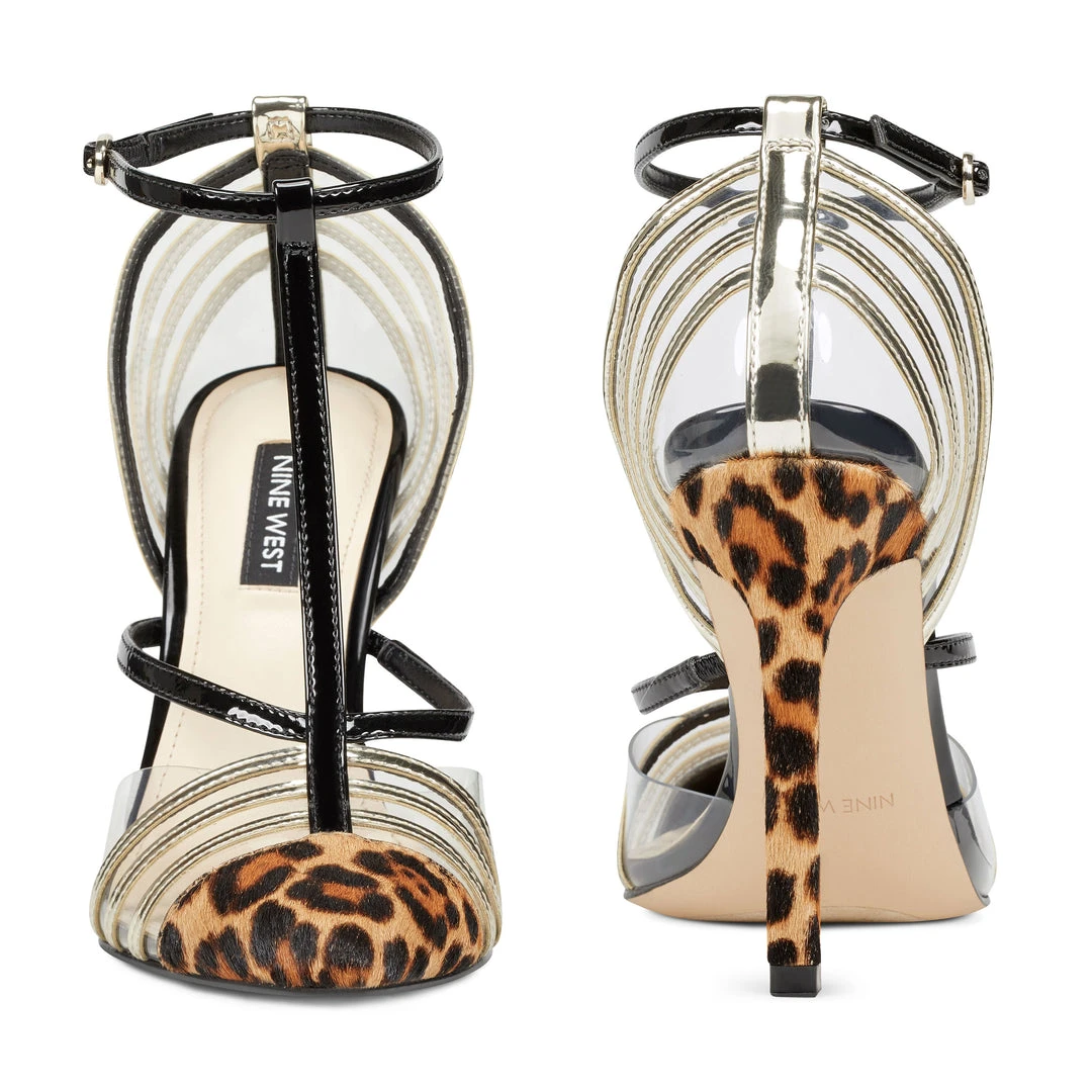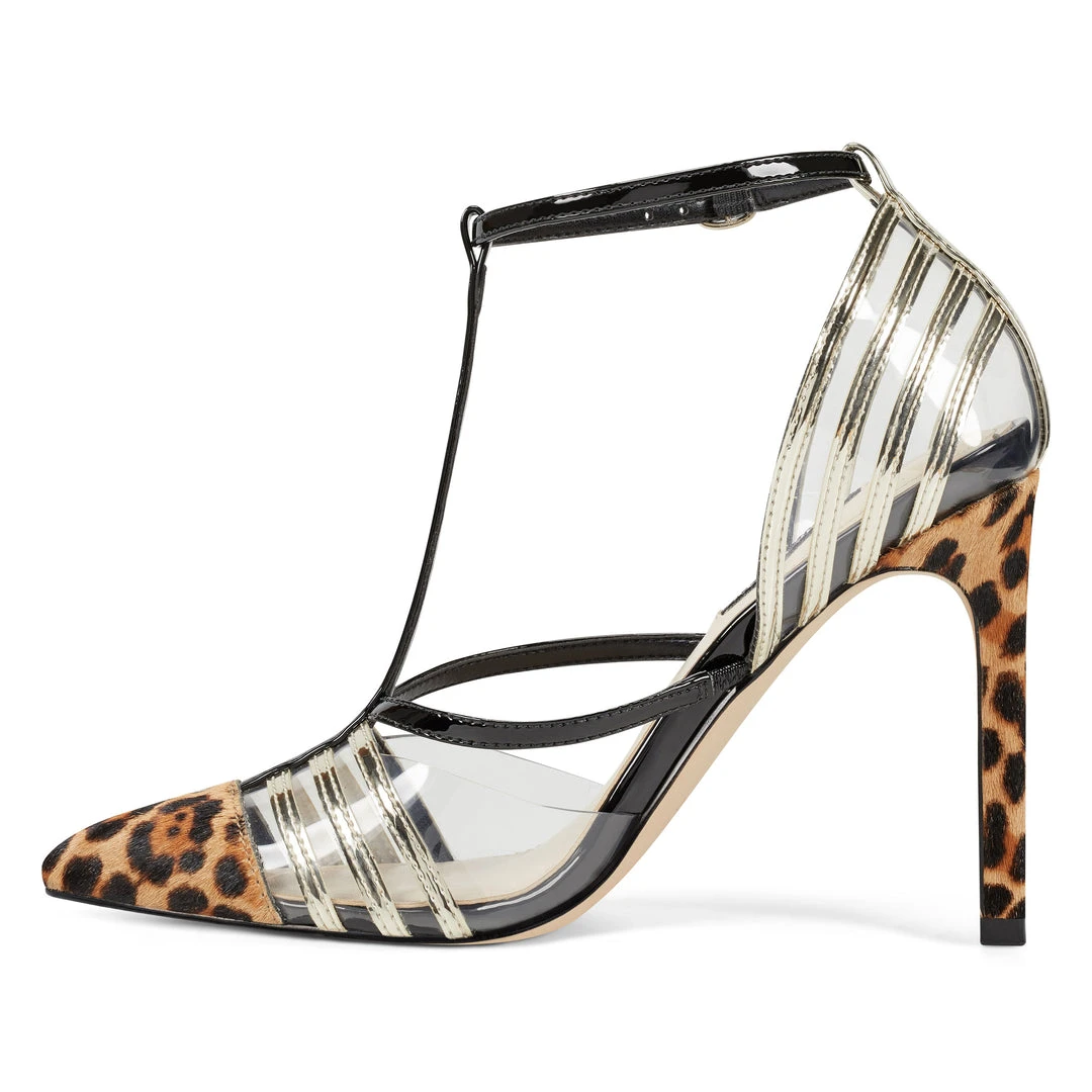 Our Terry pumps feature a 3.94 stiletto heel counterbalanced by a pointy toe and T-strap topped with an adjustable ankle strap for a perfect fit.