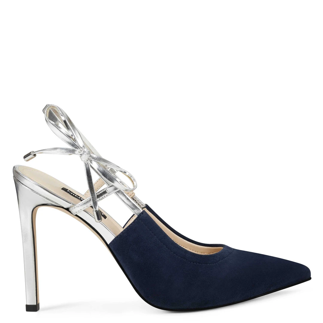 A slingback with bow accents our Tibby pointy-toe pump lifted by a sky-high 4.02″ stiletto heel.