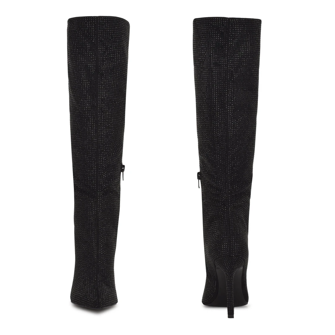 Make a statement in the Tysh tall high heel boot. This showstopping pointy toe, stilletto boot is guaranteed to turn heads with its all over rhinestone design.