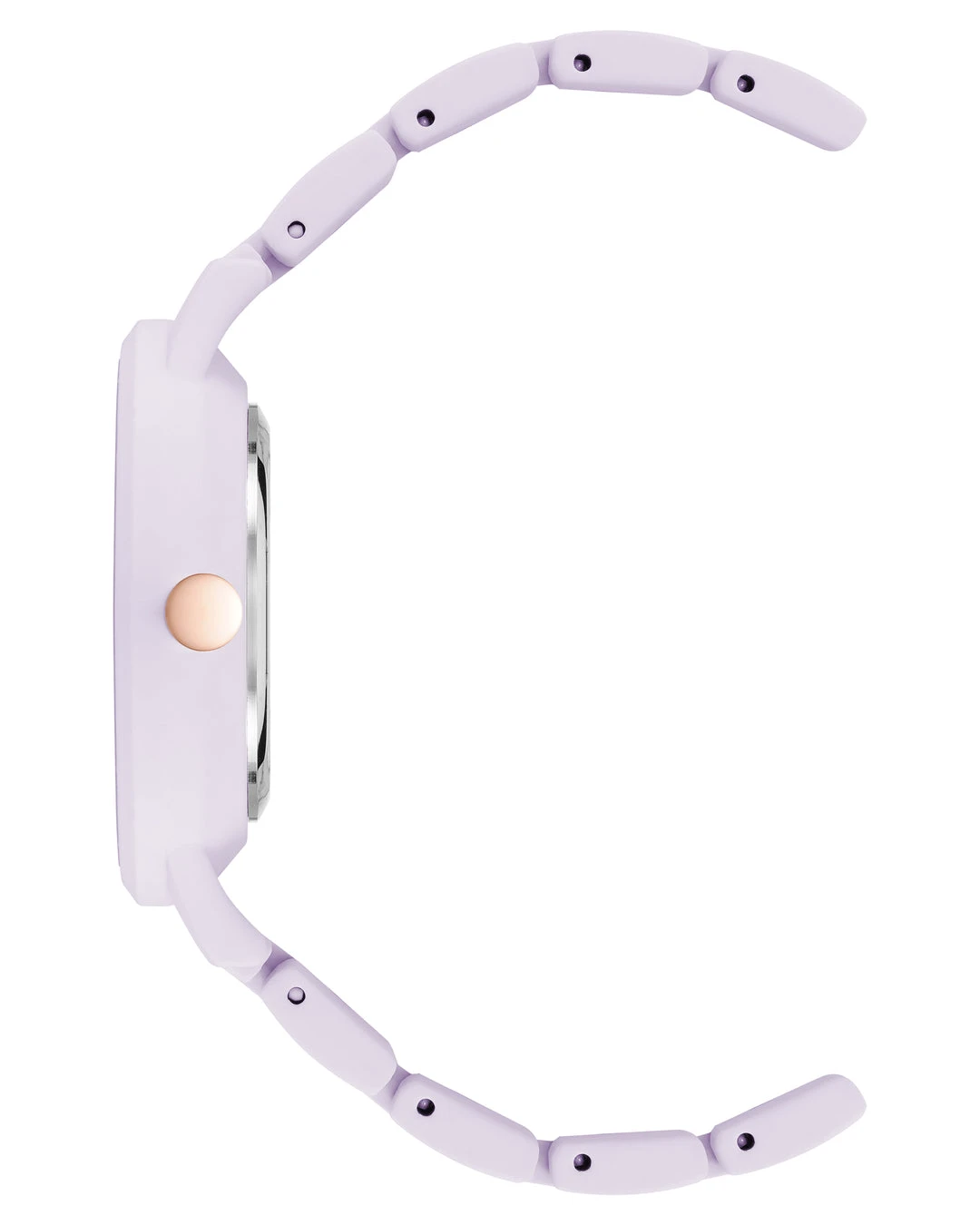 - Lavender textured dial with white filled rose gold-tone hands and markers