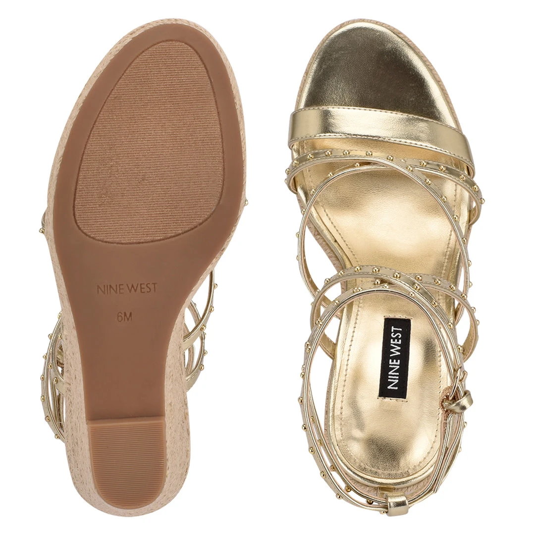 Dress to impress with the Nine West Hunda espadrille wedge sandal. The studded upper straps add the glamour to this casual silhouette. Pair these with a dress or a pair of jeans for a sexy put together outfit.