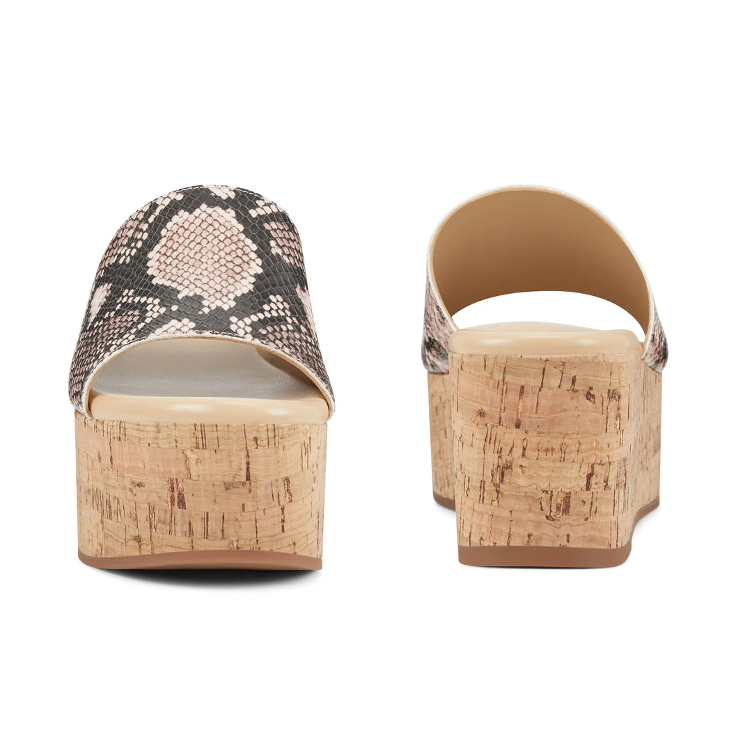 A wide band and bold cork platform heel make our retro Vale slide sandal a stylish way to accessorize your casual wardrobe.