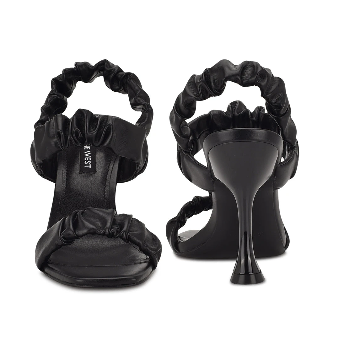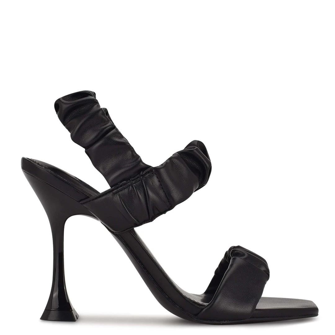 The Zuzie high heeled dress sandal is perfect for dressing up or down. The trendy sculpted heel and ruched straps make this sandal a statement piece that is perfect for pairing with jeans or a dress.